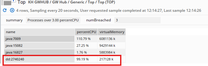 Enabling the "Tail off period" optional feature will continue to display processes that have breached the assigned "Threshold parameter" value for the specified amount of time in seconds. For example, if you set "Threshold parameter" value to 3 (by default, Pcpu would be that parameter) and have enabled the "Tail off period" by assigning a number to it, i.e. 20 (seconds), then, the process would be displayed in the data view for 20 seconds despite the process no longer breaching the assigned value (3%) for the "Threshold parameter"