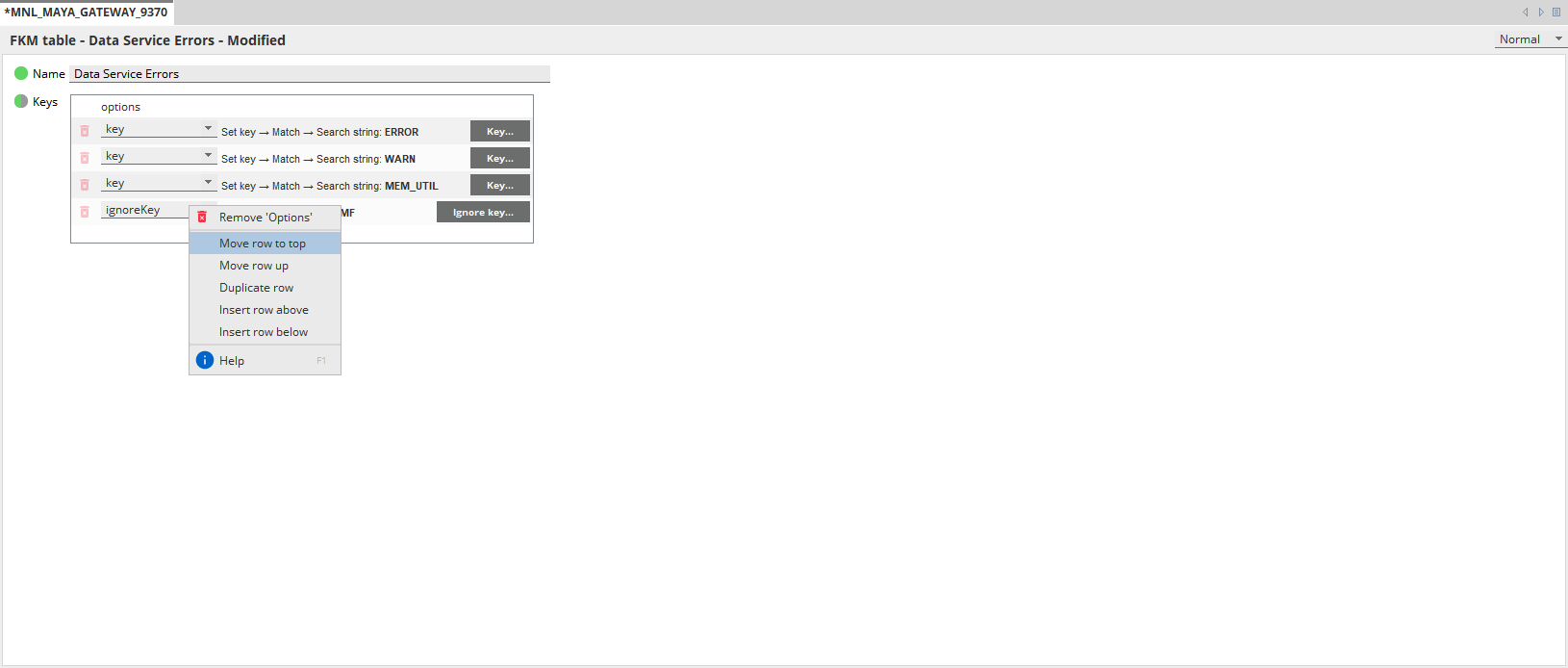 In the Gateway Setup Editor, right-click at a key and select "Move row..." to change the sequence: