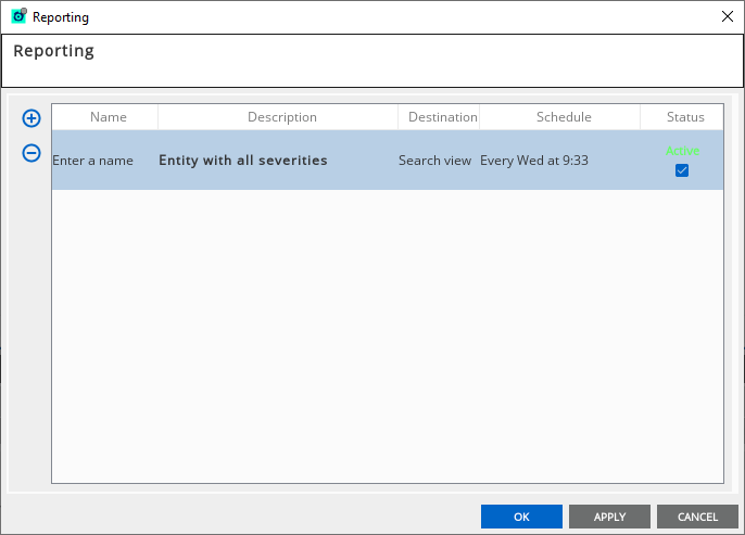 Add a new entry in the Reporting pop-up, and then double-click this entry to configure the report.
