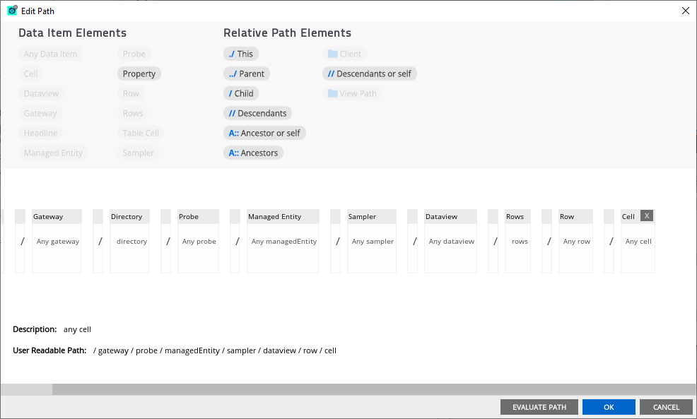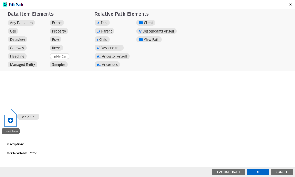...button to access the Path Editor - From the Path Editor, right-click and drag the Table Cell element to create the path, and then click OK.