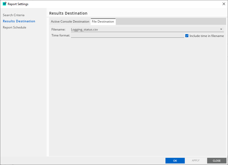From the Results Destination tab