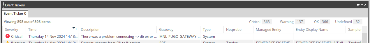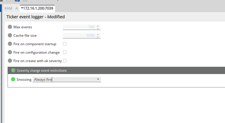 There is another way to generate an alert and that is to use the Ticker Event logger option. The behaviour is a little different from the first example - if there is a cell that is snoozed and the cell changes severity then this event will be added to the Event Ticker in the Active Console.