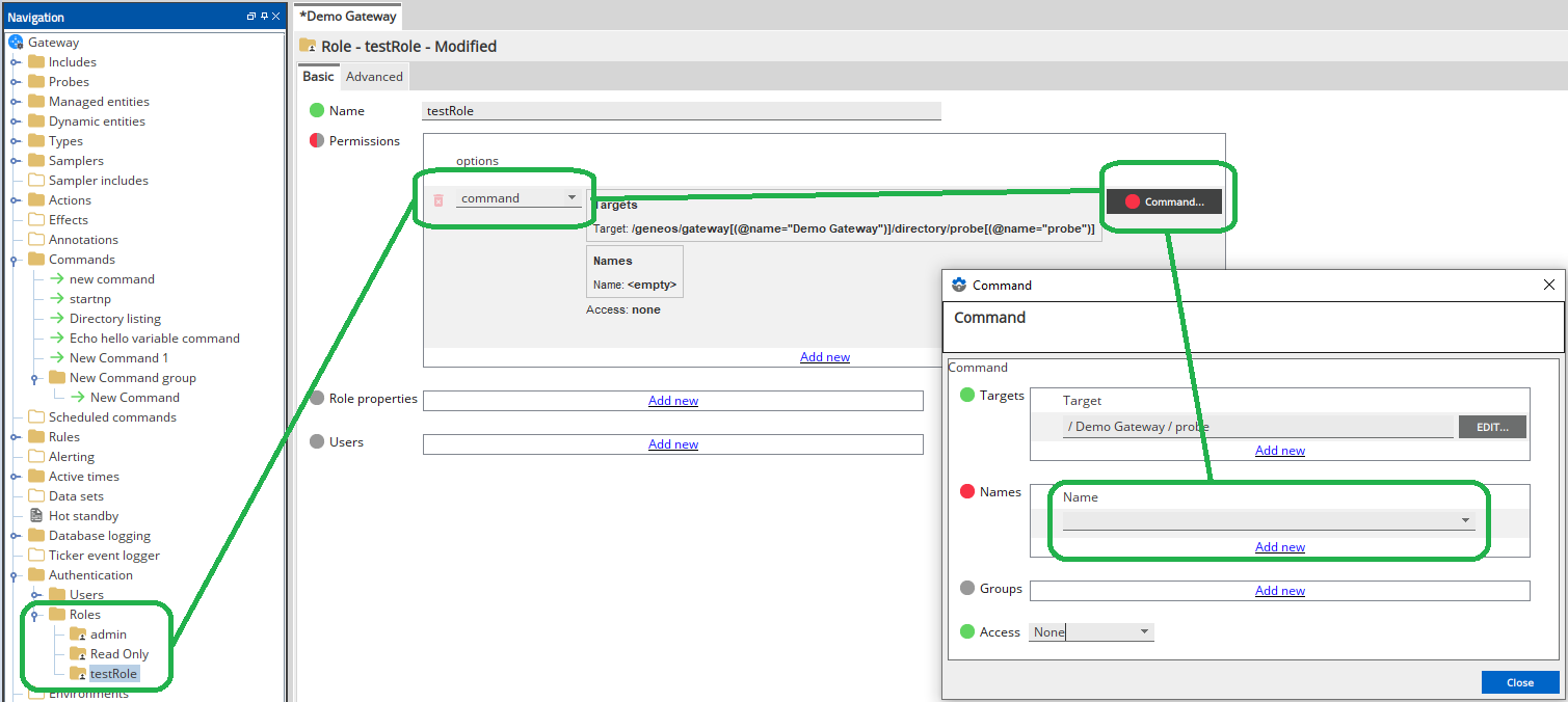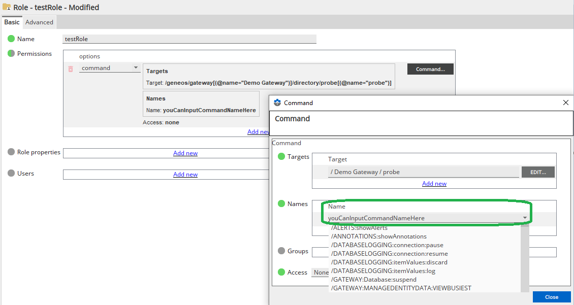 Some of the users are confused about how to add user-defined commands when restricting access on the Authentication -> Roles sections of the GSE.