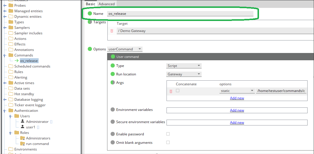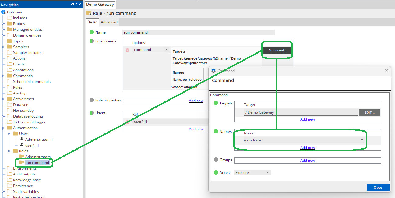 - Specifying "os_release" on authentication > roles > role > permissions > permission > command > names > name