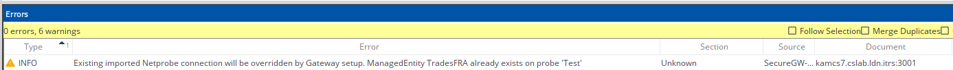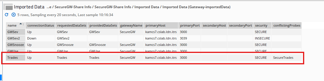 If I use Gateway Sharing on my gateway to import a connection (another netprobe and it has the same managed entity name as TradesFRA for example ) it will not appear on my gateway as there is a name conflict.