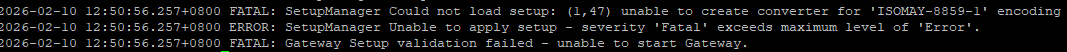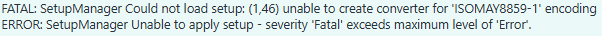 This tackles the error: FATAL: SetupManager Could not load setup: unable to create converter for '<invalid text>' encoding and the solution to the error.