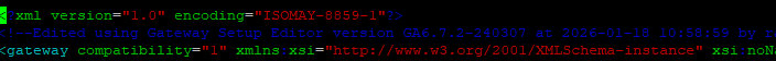 The error is ISOMAY8859-1 in the gateway.setup.xml.