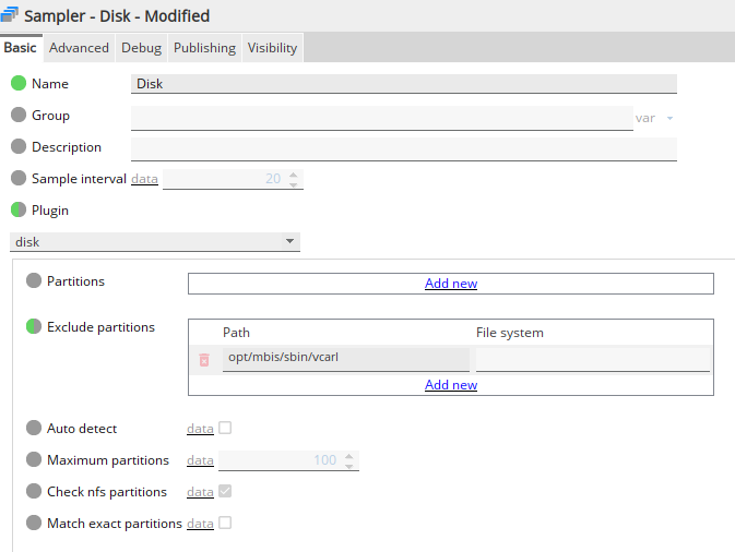 Attempt to exclude the problematic "partition path" and observe if the Disk sampler provides an output.