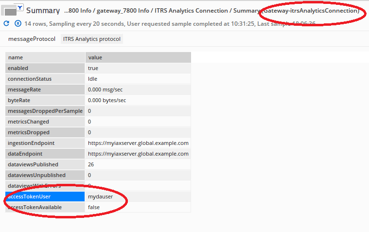 1. As a start we would suggest checking the Summary dataview of Gateway-ITRSAnalyticsConnections plugin. The accessTokenUser needs to be created on ITRS Analytics side, and accessTokenAvailable should return true if the connection is successful.